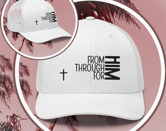 Christian Hat - Closed-Back Trucker Hat - Mesh Back - Embroidered Black FromHIM & Romans 11:36